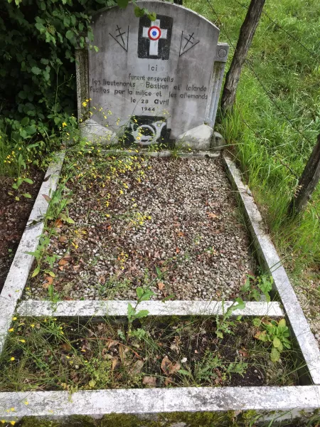 Ici furent ensevelis les lieutenants Bastian et Lalande fusillés par la milice et les allemands le 28 avril 1944