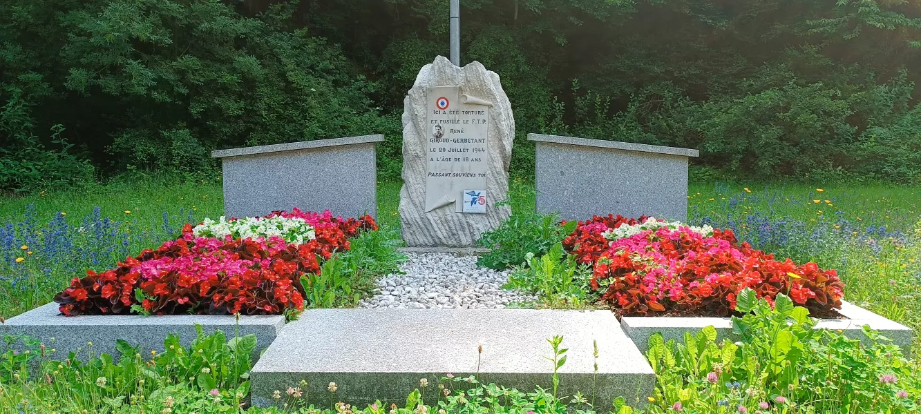 Ici a été torturé et fusillé le F.T.P René Giroud-Gerbetant le 20 juillet 1944 à l'âge de 18 ans